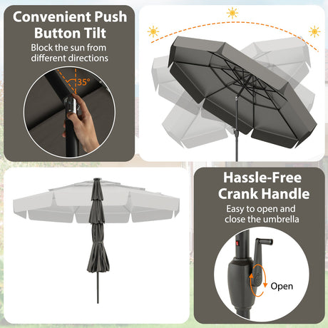 10 ft 3-tier Vented Patio Umbrella with Push Button Tilt-Gray by DirectDeals