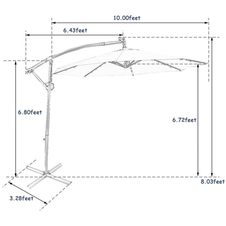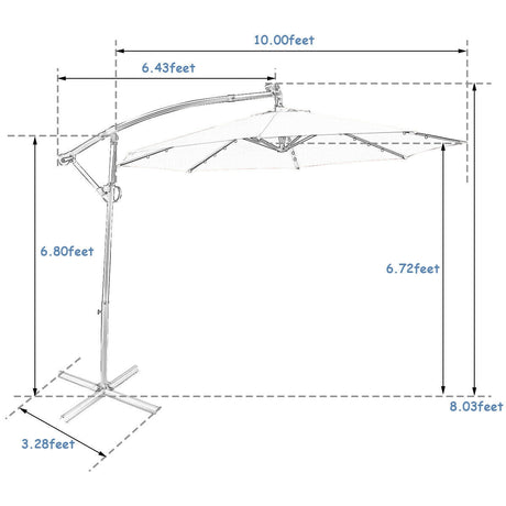 10 Feet Solar Offset Hanging Umbrella with Base and LED Lights-Beige by DirectDeals