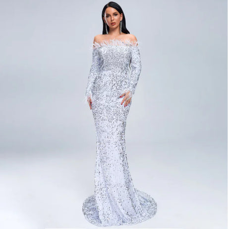 Elegant Halter Strapless Sequin Formal Dress
