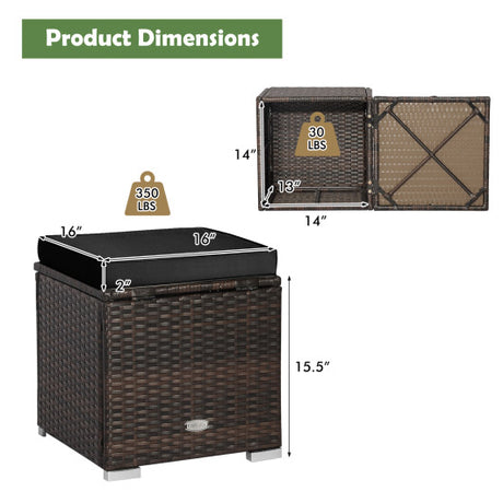 2 Pieces Patio Ottoman with Hidden Storage Space-Black