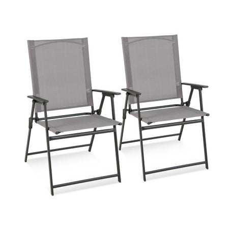 2 Pieces Patio Folding Chairs with Armrests for Deck Garden Yard-Gray