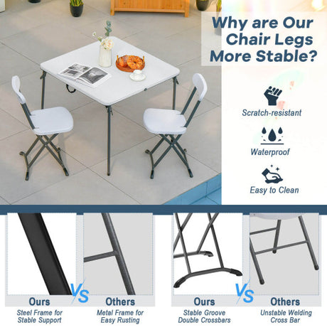 2 Pieces Outdoor Folding Chair Set with Sturdy Frame and Ergonomic Backrest-White