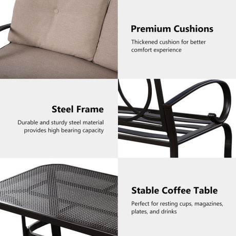2 Pieces Patio Loveseat Bench Table Furniture Set with Cushioned Chair-Beige