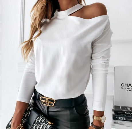 Elegant Off-Shoulder Suspender Blouse - Solid Color, Loose Fit, Stylish & Comfortable