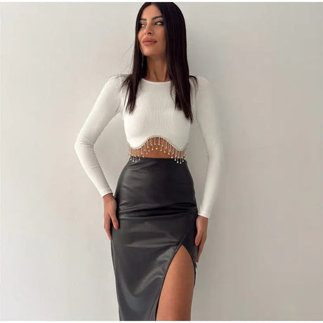 Elegant Midi Dress for Women – Sleeveless Corset Bandeau with Lace-Up and Side Split Hem
