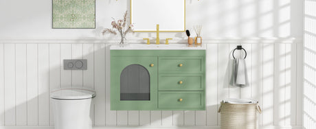 Elegant Floating Bathroom Vanity Sink And Cabinet Combo 1 Door And 2 Drawers - Green by Couch.com