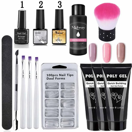 French Nail Art Poly Gel Kit with UV Brush and Nail Tips
