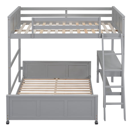 Full Over Full Bunk Bed With Ladder With Slide - Gray by Couch.com