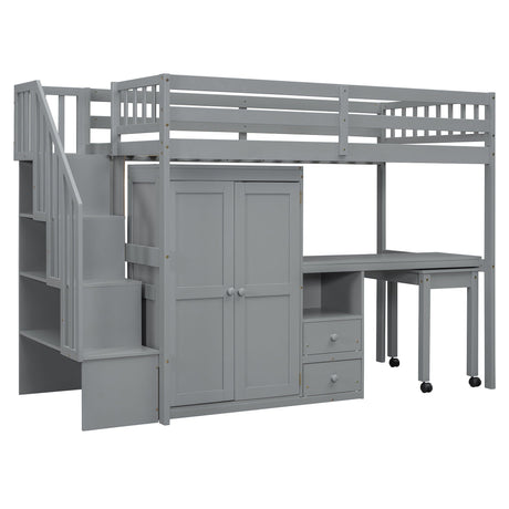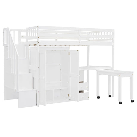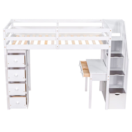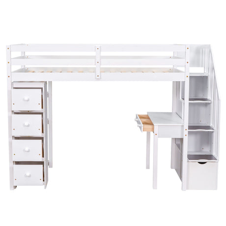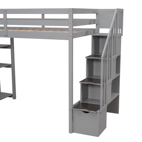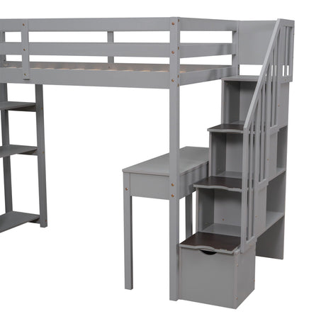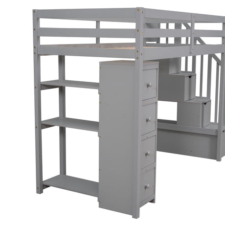 Loft Bed With Storage Drawers, Desk And Stairs With Shelves by Couch.com