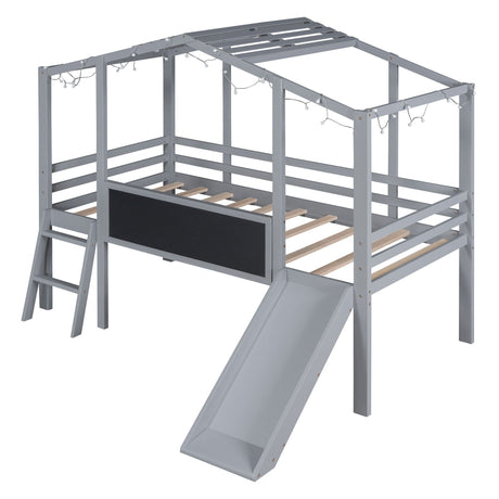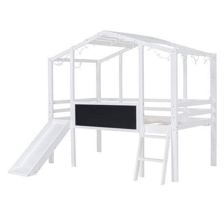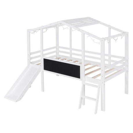 Loft House Bed With Ladder And Slide, With Blackboard And Light Strip On The Roof by Couch.com