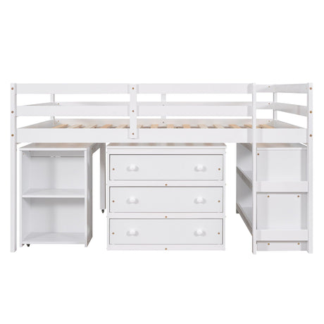 Loft Low Study Bed With Cabinet, Shelves And Rolling Portable Desk, Multiple Functions by Couch.com