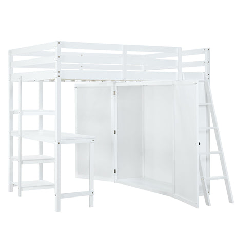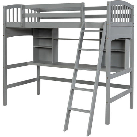 Loft Bed With Storage Shelves, Desk And Ladder by Couch.com