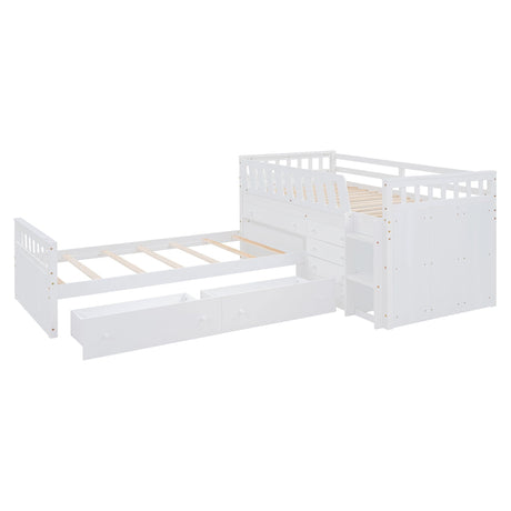 Loft Platform Bed With 7 Drawers And Full Guardrails, Modern L Shaped Space Savin by Couch.com