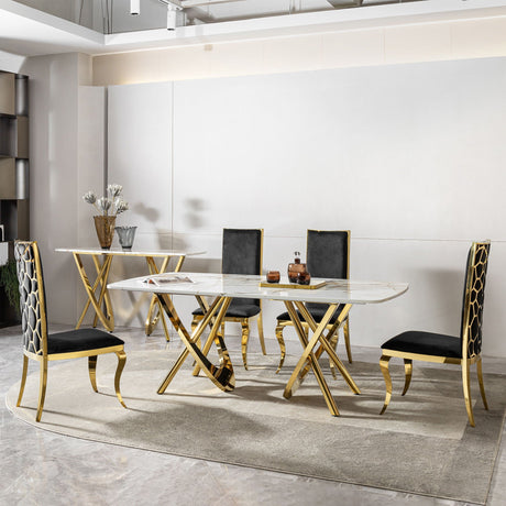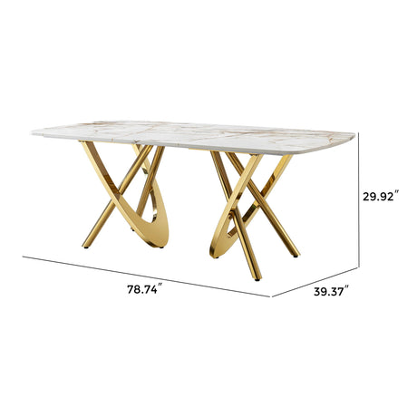 Marble Pattern Dining Table With Stainless Steel Base, Rectangular, Seats 6 Or 8 - Gold by Couch.com