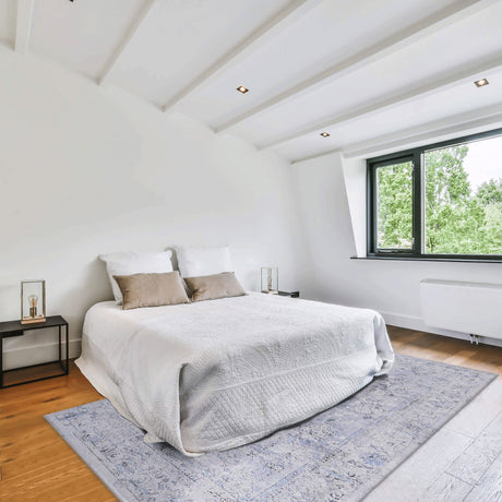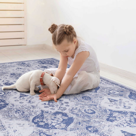 Maval - 4' X 6' Area Rug Washable - Blue / Cream by Couch.com