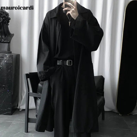 Mauroicardi Autumn Long Black Oversized Trench Coat