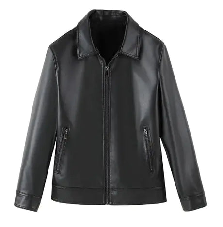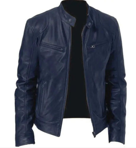Men's Zip Cardigan PU Leather Jacket With Stand Collar