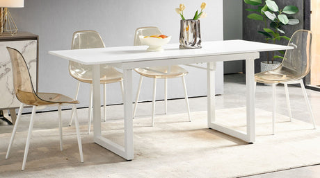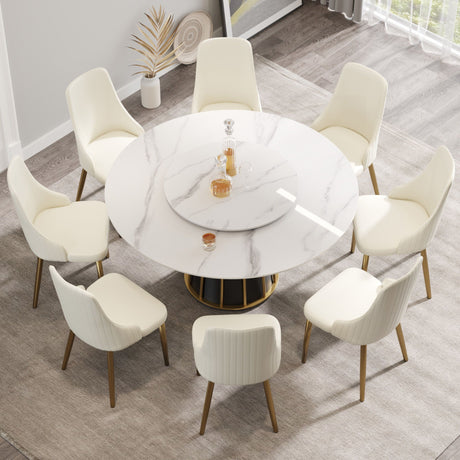 59.05" Modern Artificial Stone Round Carbon Steel Base Dining Table - White / Black by Couch.com