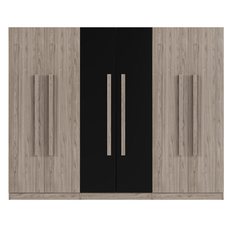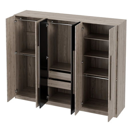 6 Doors Wardrobe Storage For Bedroom, With 2 Drawers Inside - Black / Nature by Couch.com