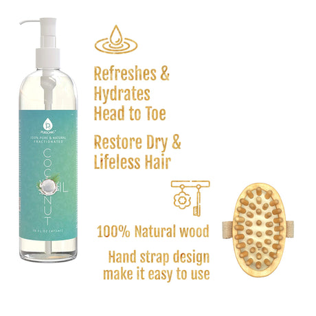 Nourishing Beauty Bundle: Fractionated Coconut Oil (16 Oz) & Boar Bristle Bath Brush by Pursonic