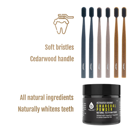 Natural Bamboo Toothbrushes & Charcoal Whitening Toothpaste Set by Pursonic