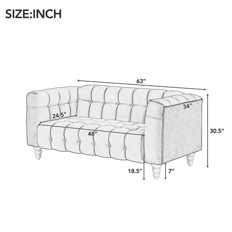 Modern Sofa Dutch Fluff Upholstered Sofa With Wood Legs, Buttoned Tufted Backrest by Couch.com