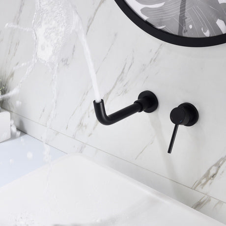 Modern Wall Mount Single Handle Bathroom Sink Faucet, Curved Spout - Matte Black Brass by Couch.com