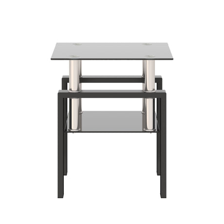 Modern Tempered Glass Tea Table, End Square Table For Living Room (Set of 2) - Black by Couch.com