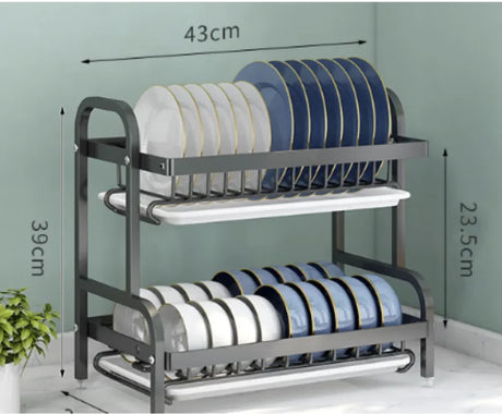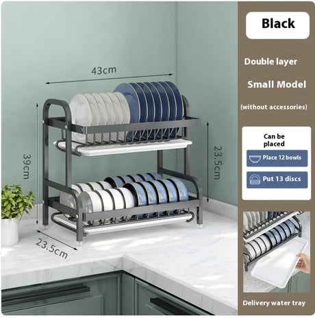 Multi-functional Double-layer Carbon Steel Tableware Storage Rack