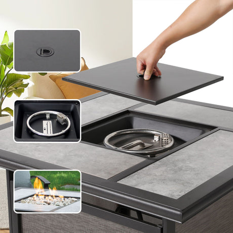 Outdoor Fire Pit Table Durable Construction With Lid - Black by Couch.com