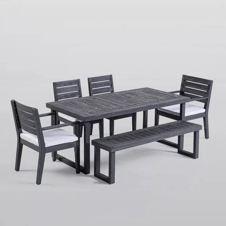 Outdoor 6 Seater Dining Set With Bench - Dark Gray / Light Gray by Couch.com