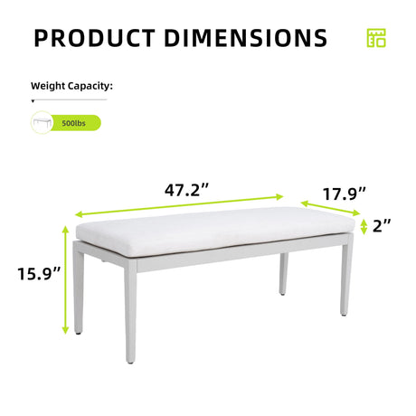 Outdoor Patio Aluminum Stationary Bench With Sunbrella Fabric Cushion - Grayish by Couch.com