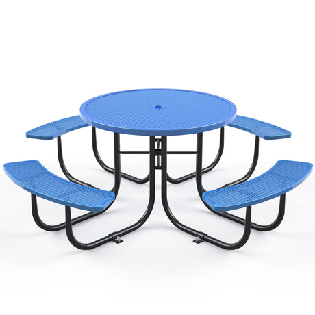 Outdoor Steel Picnic Round Table With Umbrella Pole - Blue by Couch.com