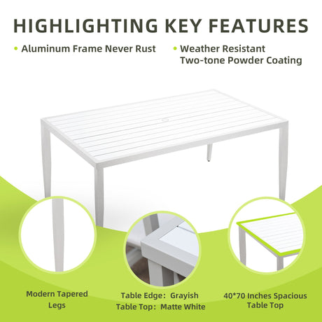 Outdoor Patio Rectangle Dining Table With Tapered Feet & Umbrella Hole by Couch.com