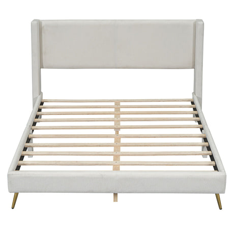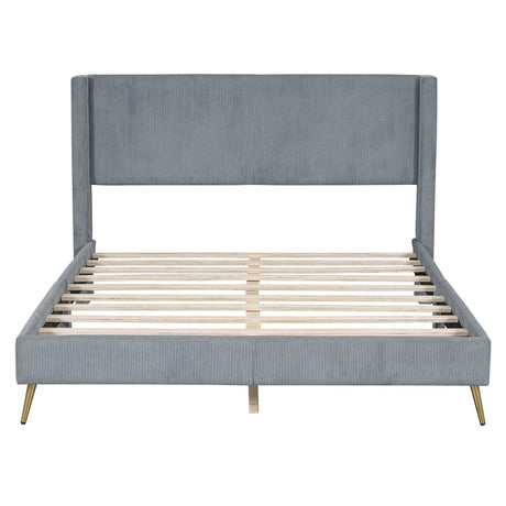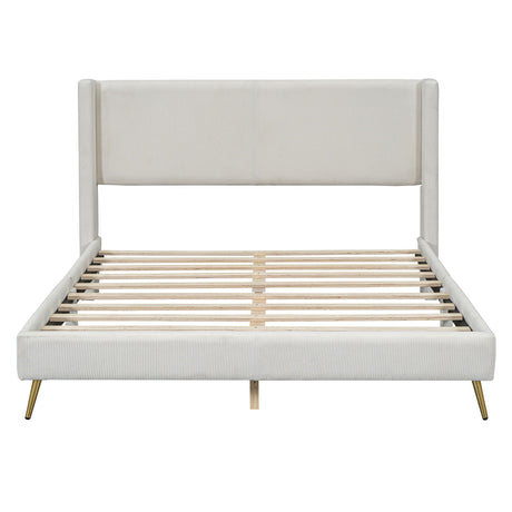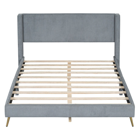 Platform Bed With Thick, Stylish Stripe Decorated Bedboard And Elegant Leg by Couch.com