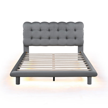 Platform Bed With LED Frame, Thick & Soft And Button Tufted Design Headboard by Couch.com
