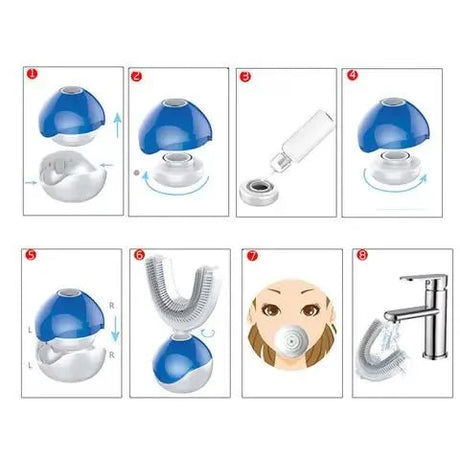 360° Automatic Electric Toothbrush, Waterproof U-Shape with Blue Light Whitening & USB Charging