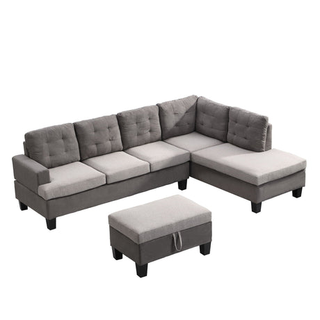 Sofa Set With Chaise Lounge And Storage Ottoman - Gray by Couch.com