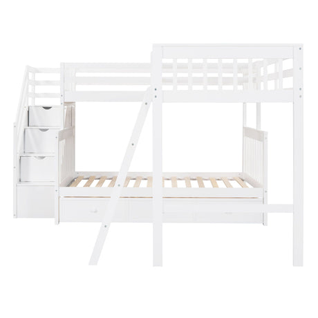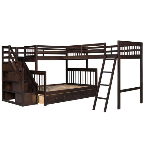 Solid L Shaped Bunk Bed With 3 Drawers, Ladder And Staircase by Couch.com