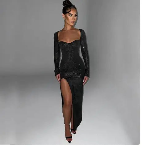 Slim Fit Slit Long Sleeve Dress