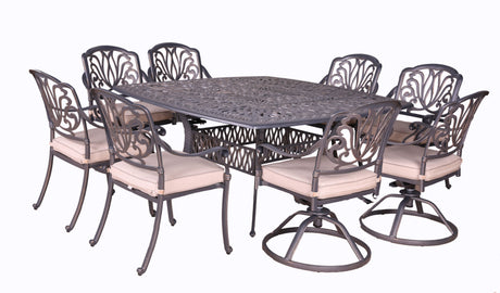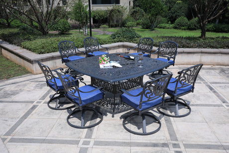 Square 8 Person 64" Long Aluminum Dining Set With Cushions by Couch.com