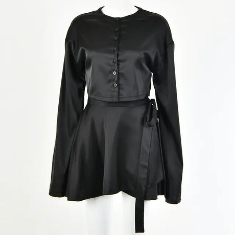 Solid Color Lantern Sleeve Tail Dress & Button Shirt Dress