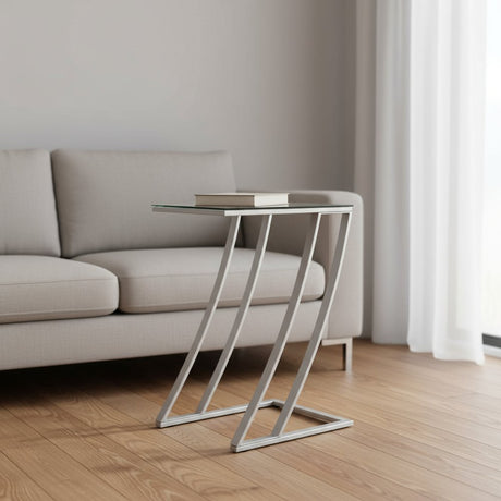 15.75" X 12" X 24" Silver Clear Metal Tempered Glass Accent Table