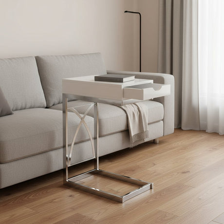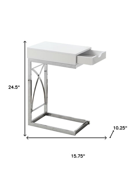 16" X 10.25" X 24.5" White Metal With A Drawer Accent Table