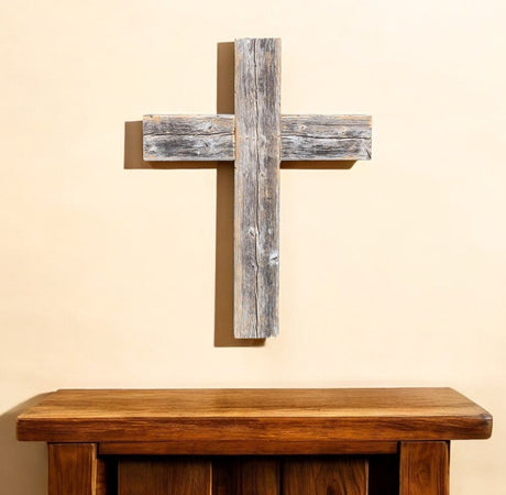 16" X 11" Gray Wood Cross Hanging Dimensional Sculpture