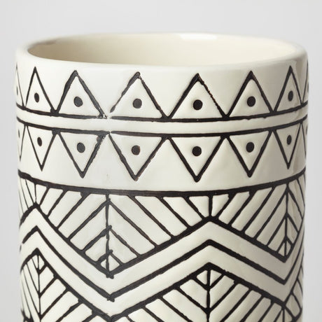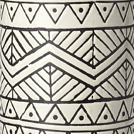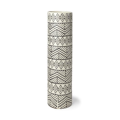17" Cream and Charcoal Geometric Cylinder Ceramic Vase