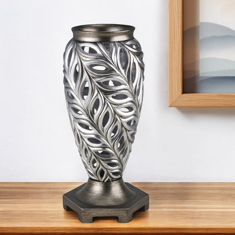 16" Gray and Silver Leaf Urn Polyresin Table Vase
