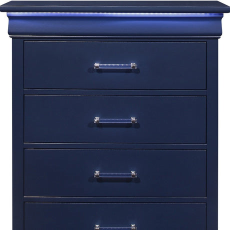 16" Blue Solid Wood Five Drawer Chest With LED Lighting