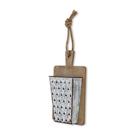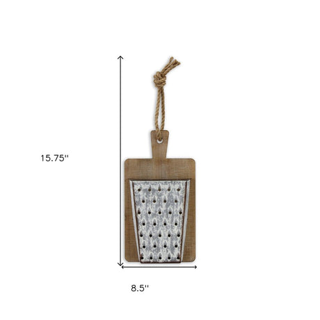 16" X 9" Gray and Brown Wood and Metal Kitchen Hanging Dimensional Sculpture