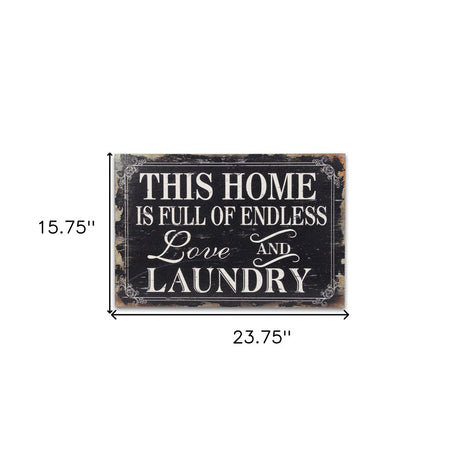 16" X 24" Black and White Endless Love And Laundry Wood Wall Decor
